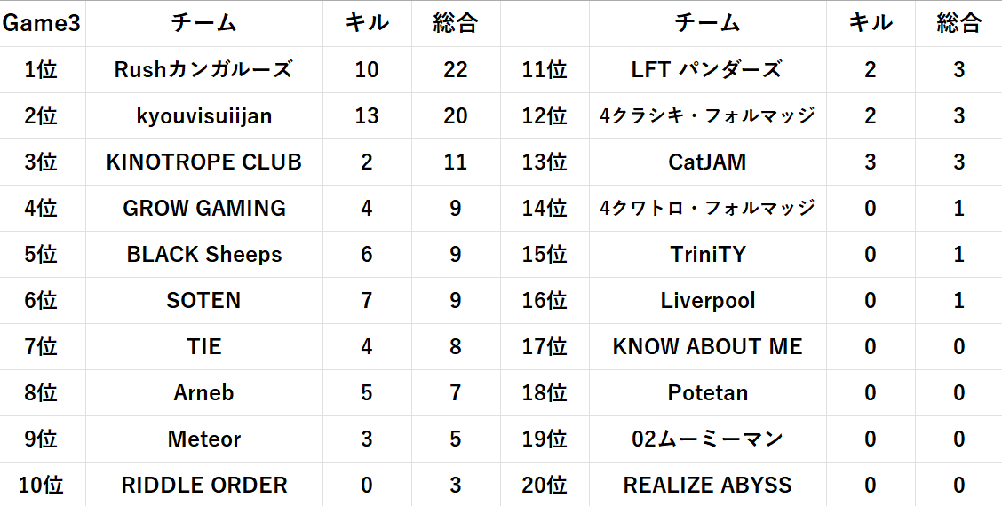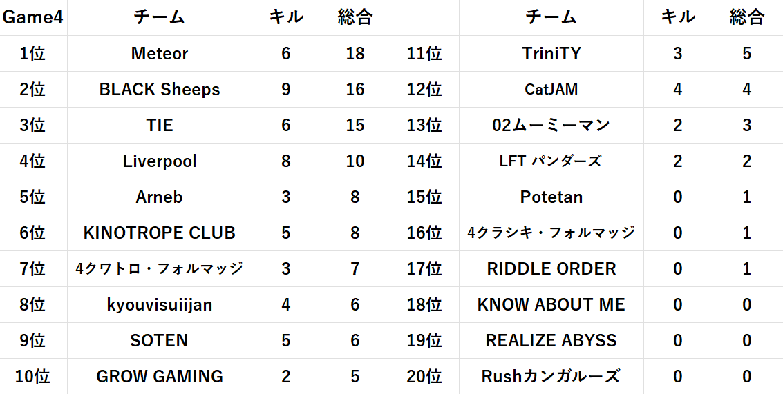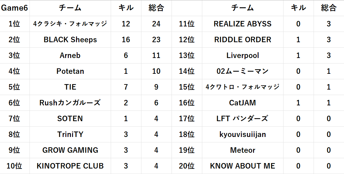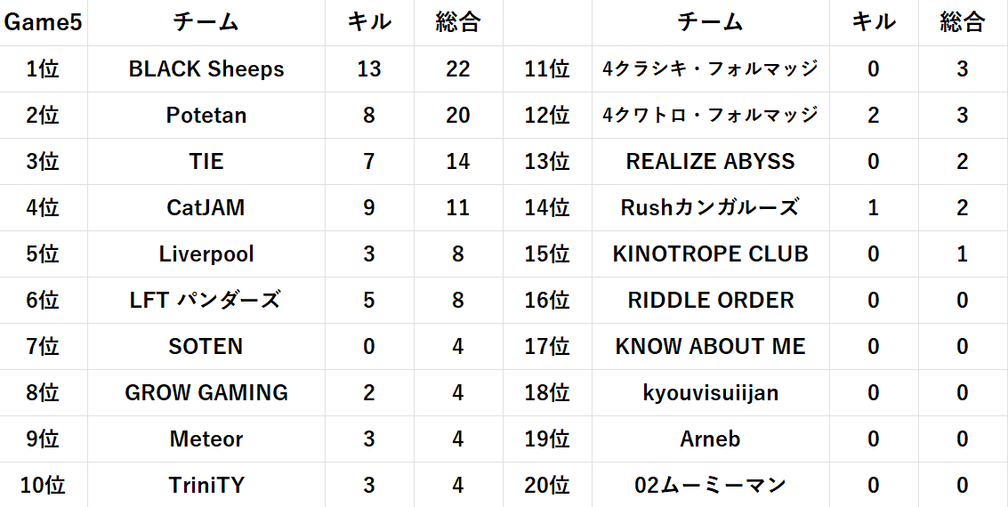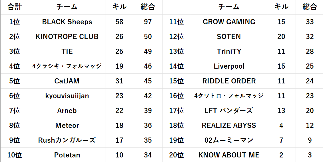 グループAはBLACK Sheepsが97ポイントと2位以下に47ポイント差をつけて圧巻の首位通過となりました!