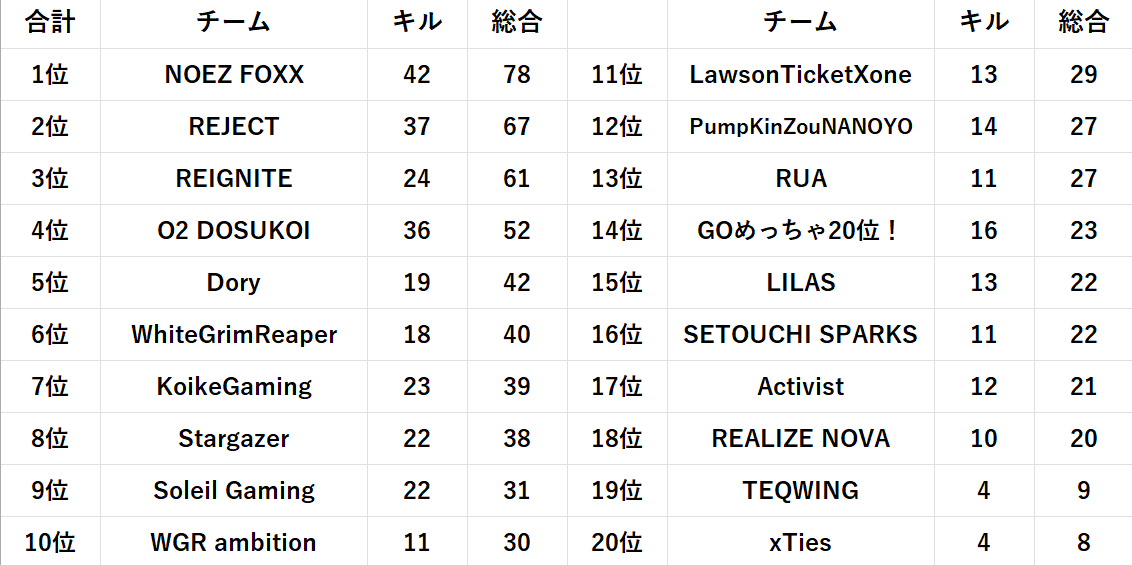 グループB首位通過となったNOEZ FOXXは抜群の安定感を見せつけます。
