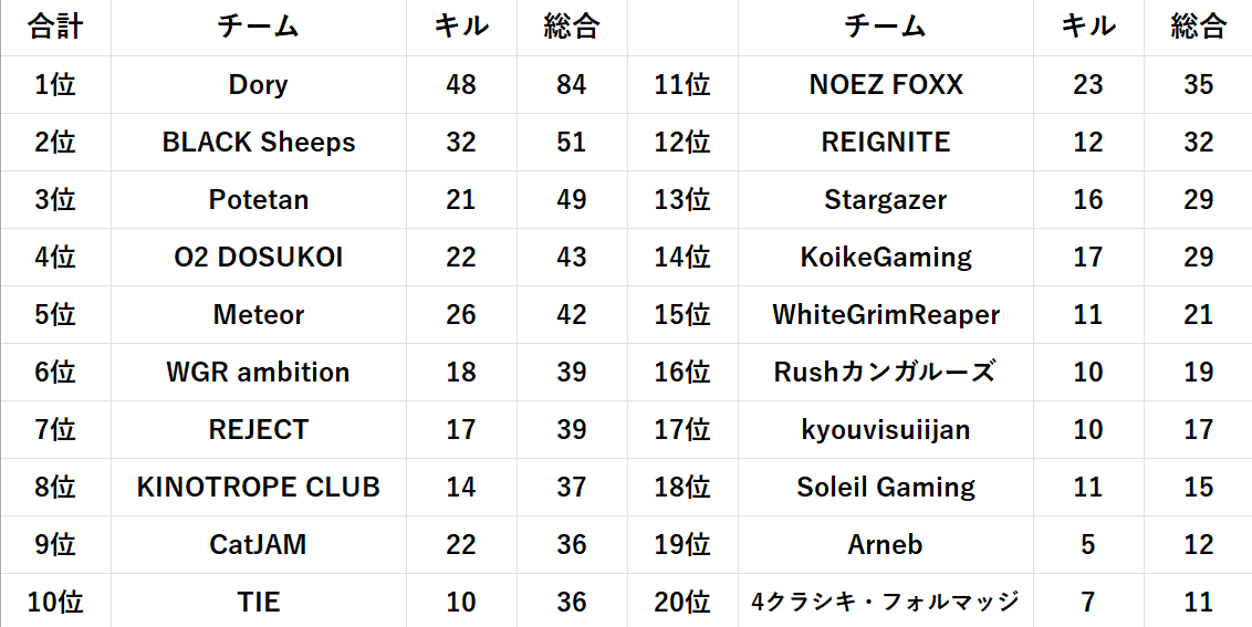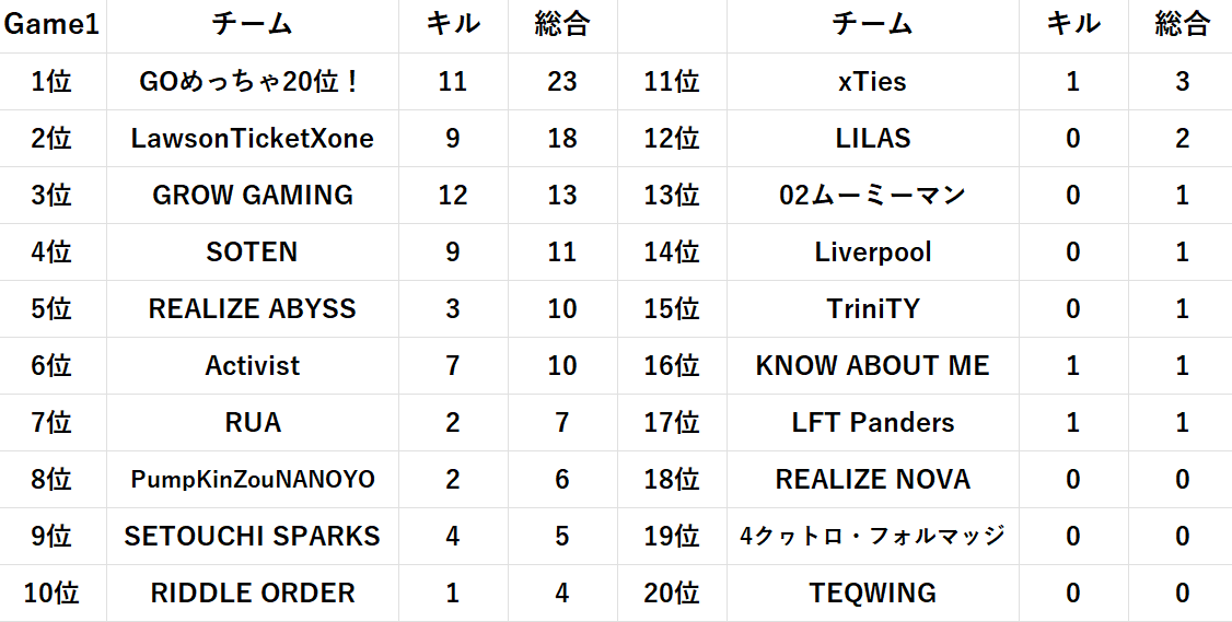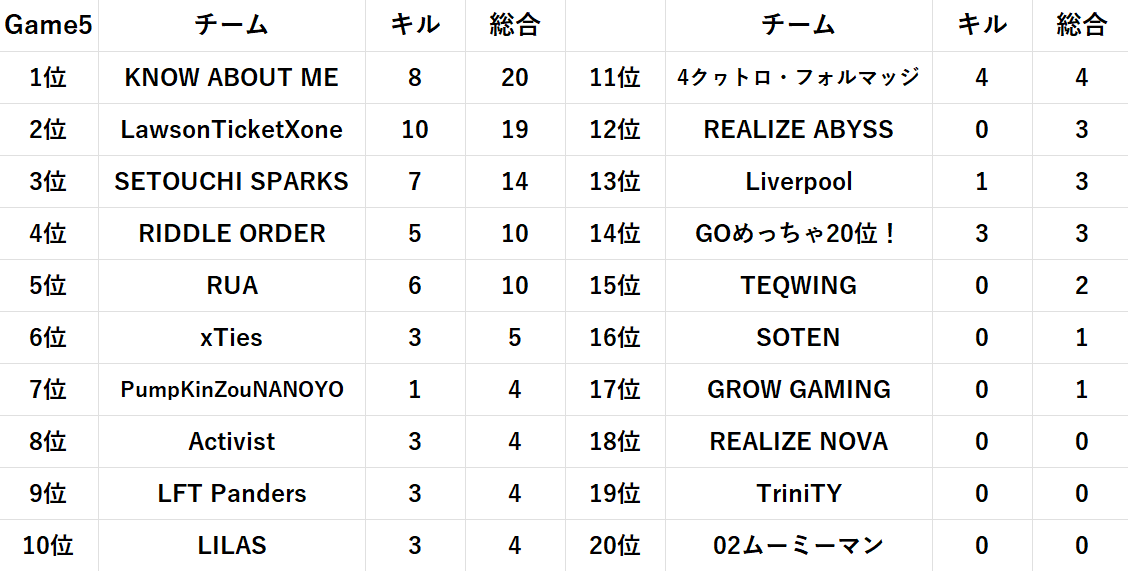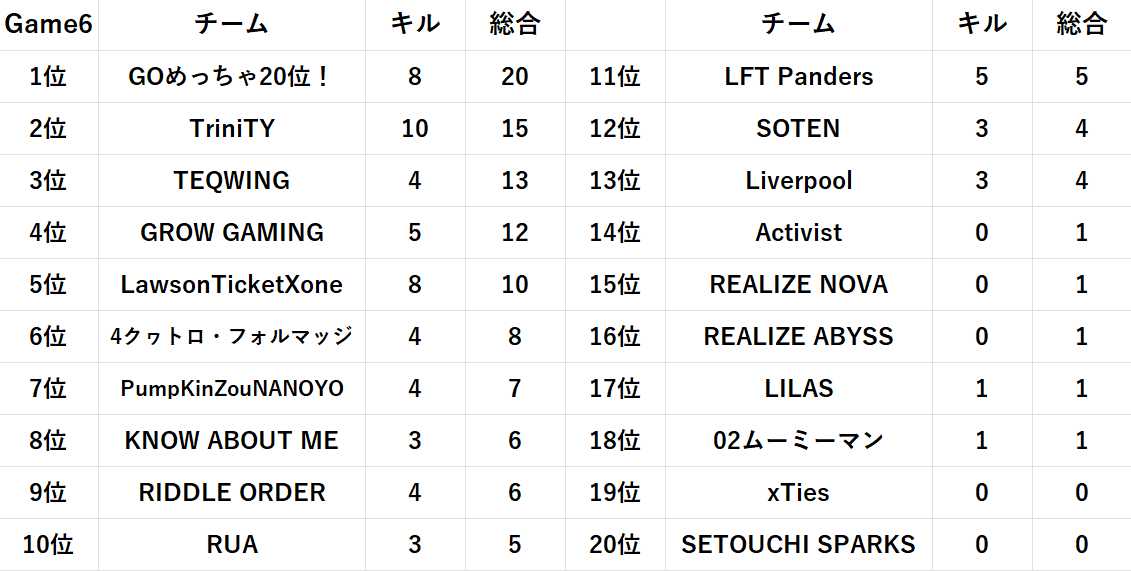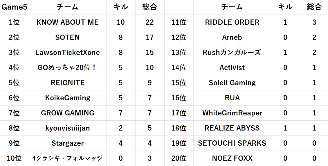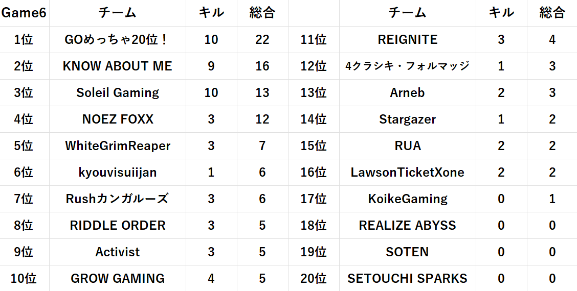ここで上位10チームに残ると、DAY3に行われるマッチポイントファイナルズへの出場が確定します。