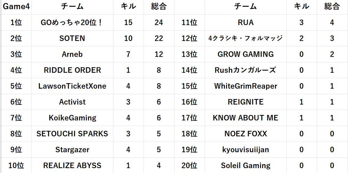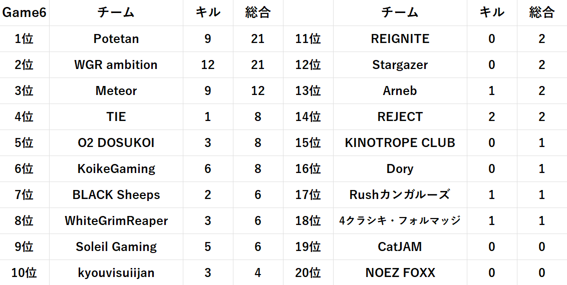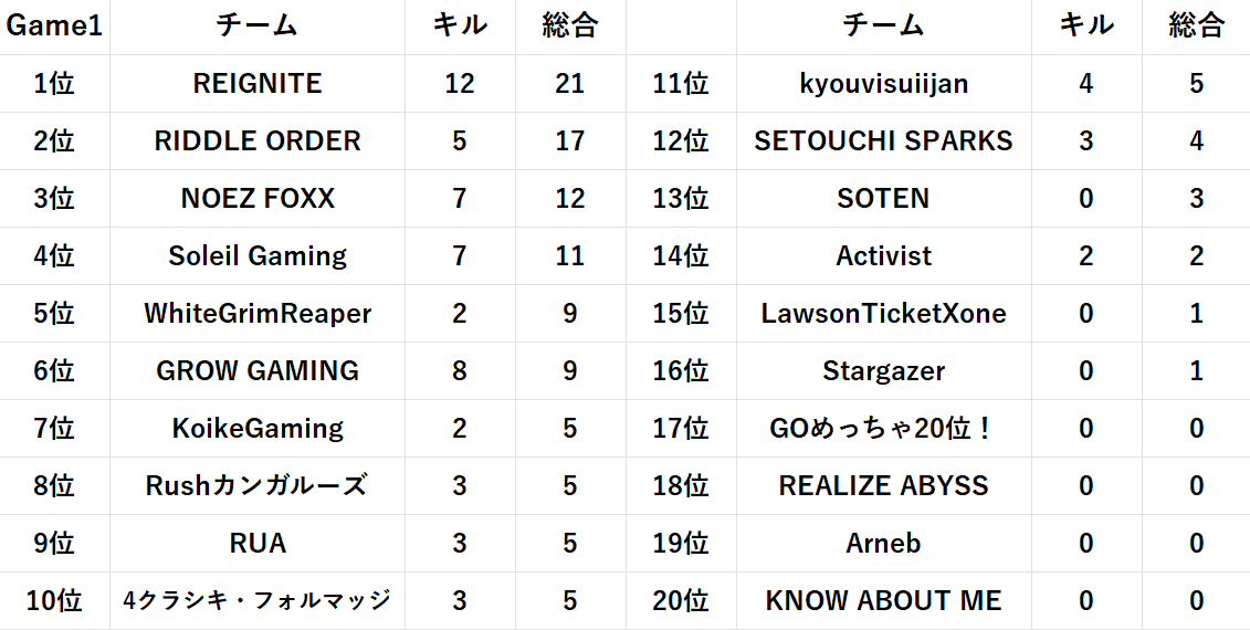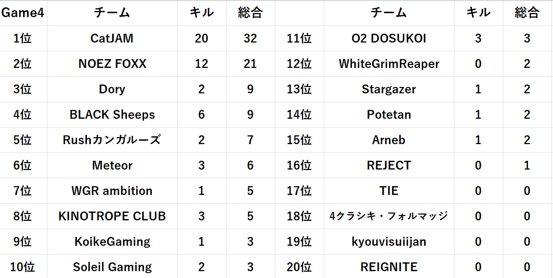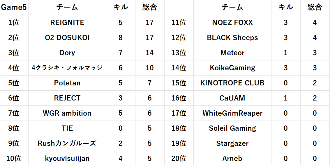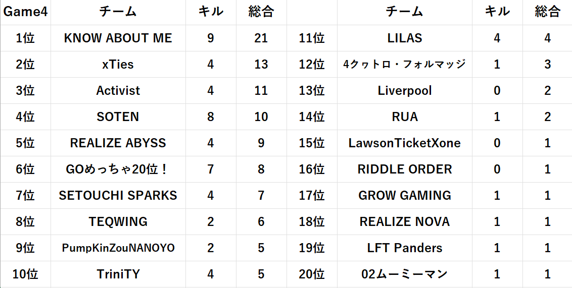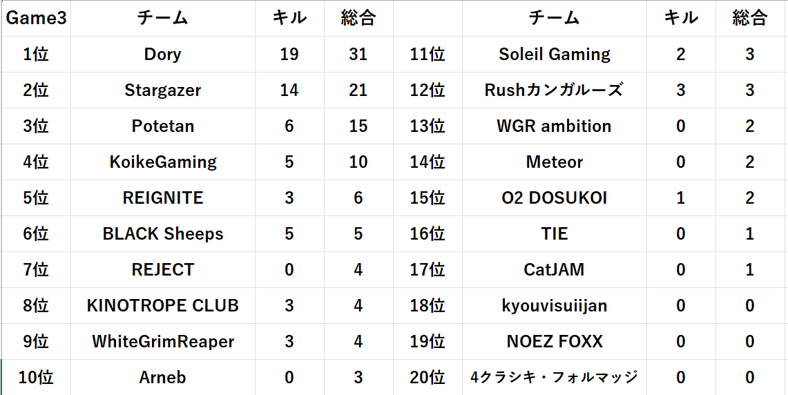 ここで上位10チームに残ると、DAY3に行われるマッチポイントファイナルズへの出場が確定します。